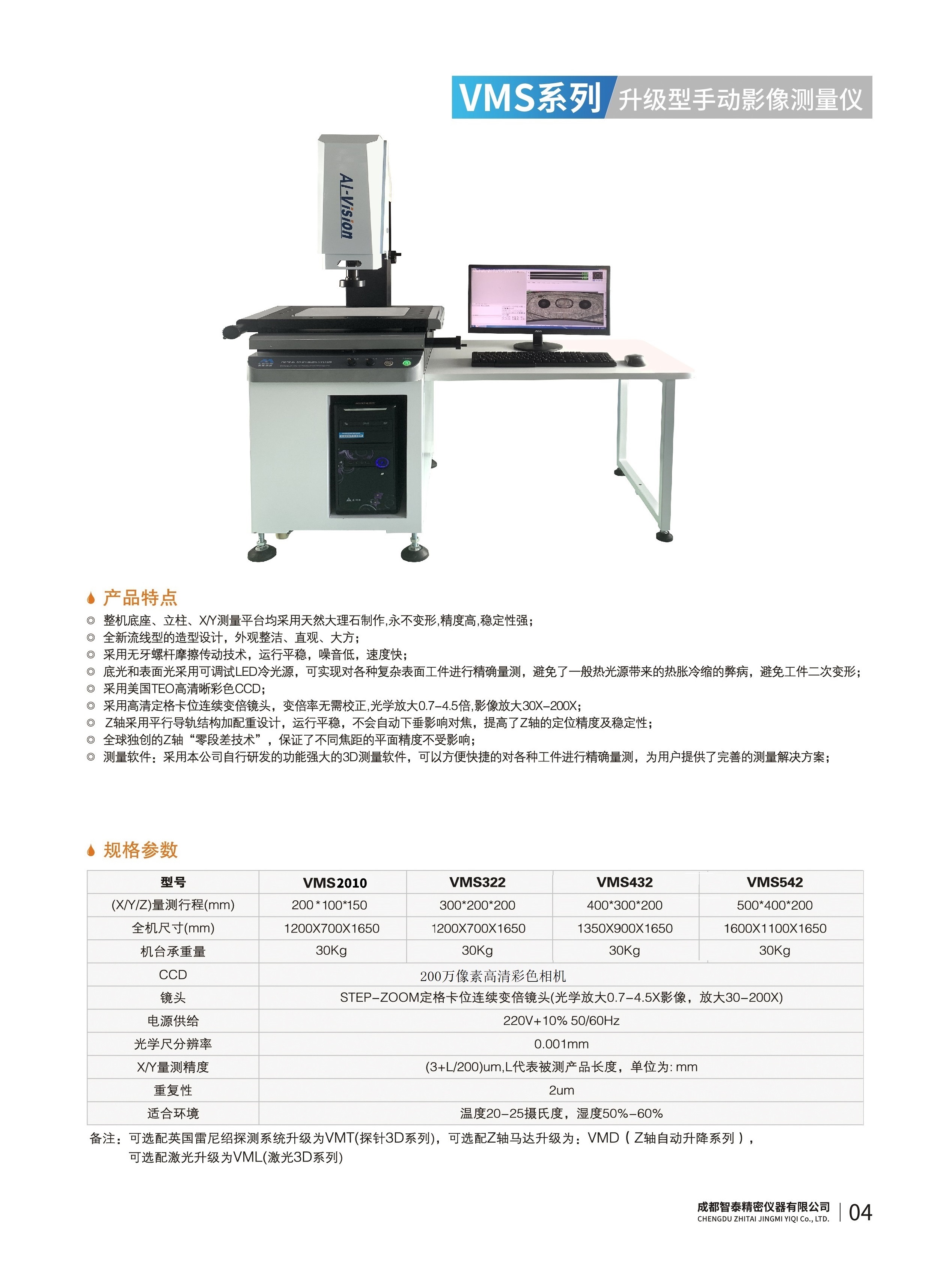 成都智泰精密儀器有限公司專注于精密測量儀器,人工智能,智能制造領域,專業從事智能視覺自動化檢測解決方案的貿易型企業。公司成立于2011年,位于天府之國成都,現有行業精英十余人,辦公倉儲面積200余平米。 公司主要產品為精密光學影像測量儀,精密輪廓形狀測量儀,精密機器人定位系統,精密智能視覺尺寸檢測儀器,精密表面缺陷智能檢測設備,工業工程特種機器人。 公司憑借過硬的技術實力和產品方案,率先進入智能視覺自動化檢測領域,推廣以精密智能視覺自動化檢測為基礎的機器人自動化應用,公司不斷整合上下游的資源,擁有巨大的全產業鏈優勢。客戶群體覆蓋了我國精密制造業的多數領域,包括航空、航天、軍工、汽車、新能源、光伏、食品,精密電子、精密機械、模具、PCB、LCD、五金、塑膠、醫療、教育、計量及科研院所等行業。 公司創新的產品能滿足生產與制造行業客戶的要求,訓練有素的工程師能及時提供多種技術服務,如解...